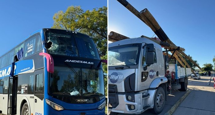 Un poste de luz que era transportado por un camión atravesó un colectivo y dejó un pasajero lesionado