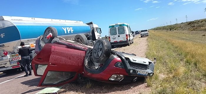 Ante esta situación se desplazó personal policial comunicando que se trataba de la camioneta marca Renault Oroch, color roja, donde momentos antes y por razones que se tratan establecer la conductora perdió el control del rodado y volcó dando tumbos hasta que quedó a un costado de la banquina.