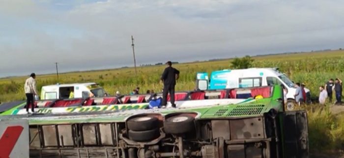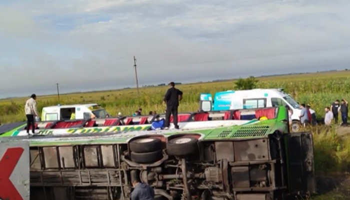 Por lo que se ve en las primeras imágenes, el colectivo, con 50 personas a bordo, quedó tendido a un costado de la transitada ruta alrededor de las 8 de la mañana, a la altura del kilómetro 325.