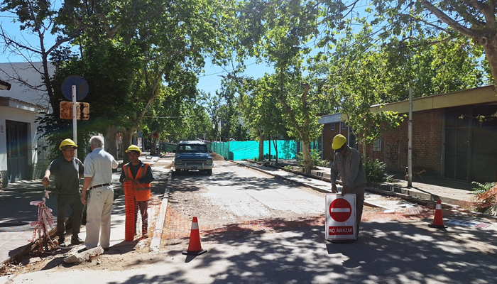 En el lugar, obreros municipales se encuentran realizando obras de adoquinado en la arteria. Los trabajos se extenderán por los próximos días.