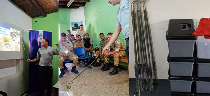 Durante el encuentro, realizado de manera presencial y virtual para abarcar a todas las delegaciones, se trabajó en la actualización de información sobre el rescate de fauna silvestre, normas de bioseguridad, identificación de especies protegidas y procedimientos administrativos para garantizar que cada intervención sea segura y efectiva. Además, se entregó equipamiento específico para manejo adecuado de animales: cajas de transporte, ganchos herpetológicos, guantes de cuero, recipientes para traslado y material descartable de bioseguridad. Estas herramientas permiten reducir el estrés de los animales durante los rescates y resguardar la integridad del personal.