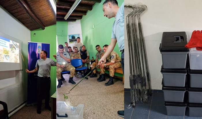 Durante el encuentro, realizado de manera presencial y virtual para abarcar a todas las delegaciones, se trabajó en la actualización de información sobre el rescate de fauna silvestre, normas de bioseguridad, identificación de especies protegidas y procedimientos administrativos para garantizar que cada intervención sea segura y efectiva. Además, se entregó equipamiento específico para manejo adecuado de animales: cajas de transporte, ganchos herpetológicos, guantes de cuero, recipientes para traslado y material descartable de bioseguridad. Estas herramientas permiten reducir el estrés de los animales durante los rescates y resguardar la integridad del personal.