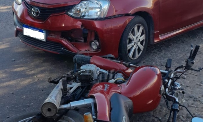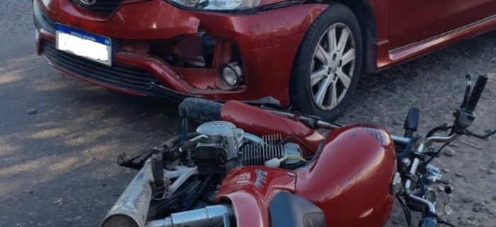 El accidente ocurrió en la intersección de avenida Alberdi y calle Chubut. El motociclista fue trasladado al hospital con traumatismos, mientras que los ocupantes del automóvil resultaron ilesos.
