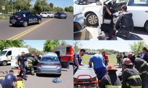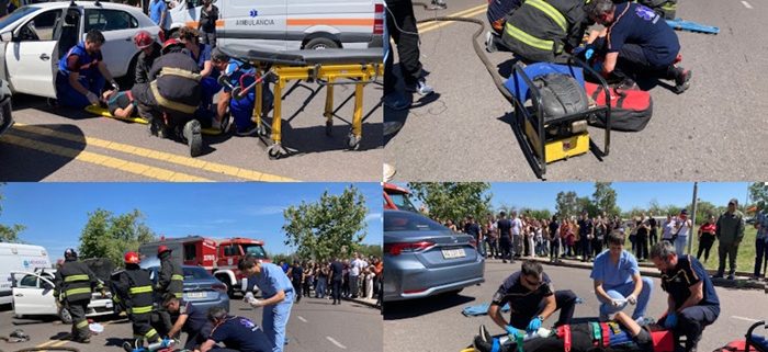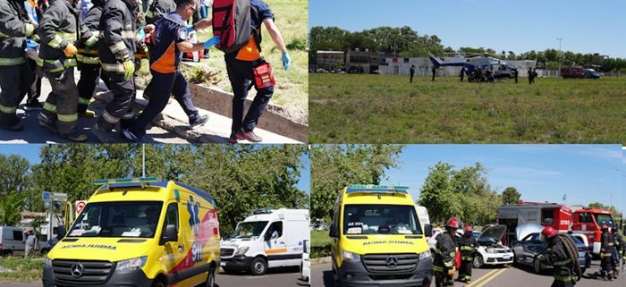 En cuanto al simulacro, el mismo consistió en un incidente vial entre 2 vehículos con 3 lesionados, en Avda San Martín y Emilio Mitre Una vez activado el protocolo, llegaron hasta el lugar el helicóptero sanitario, que trasladó al lesionado más grave, y 2 ambulancias, una de alta complejidad y otra de baja complejidad para el.traslado de los otros lesionados, todos al Hospital Schestakow.