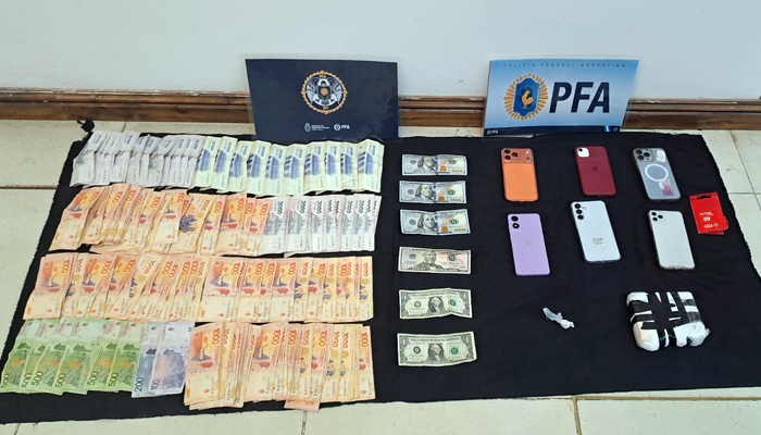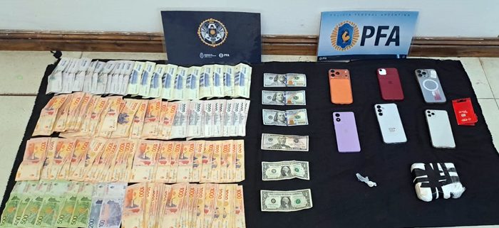 Con la autorización judicial correspondiente, se efectuó la prueba de campo al envoltorio, la cual arrojó resultado positivo para cocaína, con un peso de 506,4 gramos. Durante la intervención fueron incautados la droga, el vehículo, seis teléfonos celulares, 589.800 pesos, 352 dólares y demás elementos de interés para la causa, mientras que los dos ocupantes del vehículo fueron detenidos.