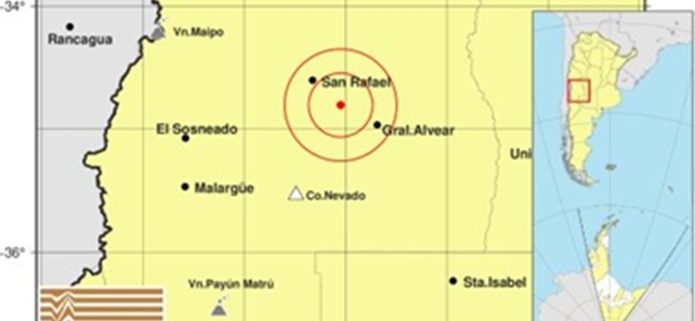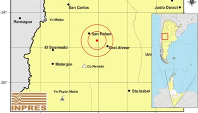 El epicentro fue en San Rafael. 227 km al Sur de Mendoza; 231 km al Suroeste de San Luis; 34 km al Sureste de San Rafael -34.81 (lat) -68.05 (long).