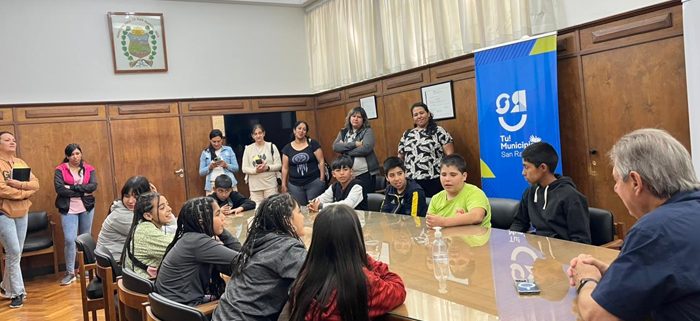 Un grupo de chicos de la escuela N° 1-442 “Colonizador Vicente López”, del paraje Las Aguaditas, Goudge, fueron recibidos esta mañana en el Despacho Mayor de la Municipalidad por el intendente Omar Félix.