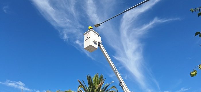 “Tras trabajar en zonas como las avenidas Cardonato y Sueta y en el distrito de El Sosneado, ahora ingresamos a trabajar en el recambio de luminarias desde la Rotonda de la Copa al Oeste”, explicó el director de Electrotecnia Pablo Yagüe.