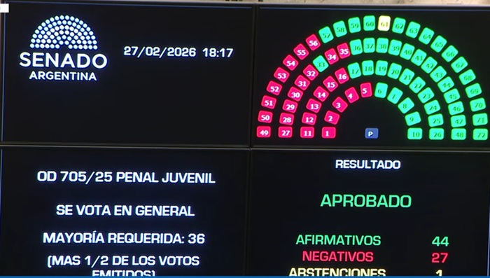 El proyecto, que llegó al Senado en revisión desde Diputados, fue aprobado por una amplia mayoría: 44 votos a favor, 27 em contra y 1 abstención.