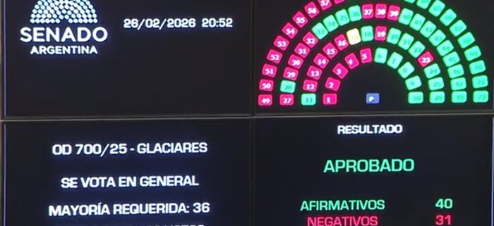 Con 40 votos afirmativos, 31 negativos y 1 abstención el Senado aprobó en general la Ley de Glaciares, también en particular obtuvo la misma votación