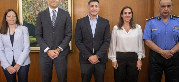 En la conferencia de prensa que se realizó este viernes participaron Marcelo Calipo, jefe de la Policía de Mendoza; Daniela García, jefa de Gabinete del Ministerio de Educación, Cultura, Infancias y DGE; Georgina Cicchitti, de la Dirección de Atención a Personas con Discapacidad; Agustín Píscopo, director del Registro Civil, y Luis Borrego, subsecretario de Transporte.