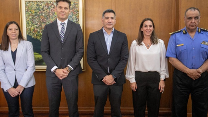 En la conferencia de prensa que se realizó este viernes participaron Marcelo Calipo, jefe de la Policía de Mendoza; Daniela García, jefa de Gabinete del Ministerio de Educación, Cultura, Infancias y DGE; Georgina Cicchitti, de la Dirección de Atención a Personas con Discapacidad; Agustín Píscopo, director del Registro Civil, y Luis Borrego, subsecretario de Transporte.