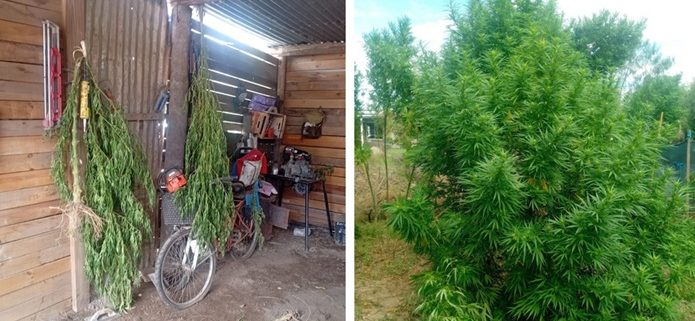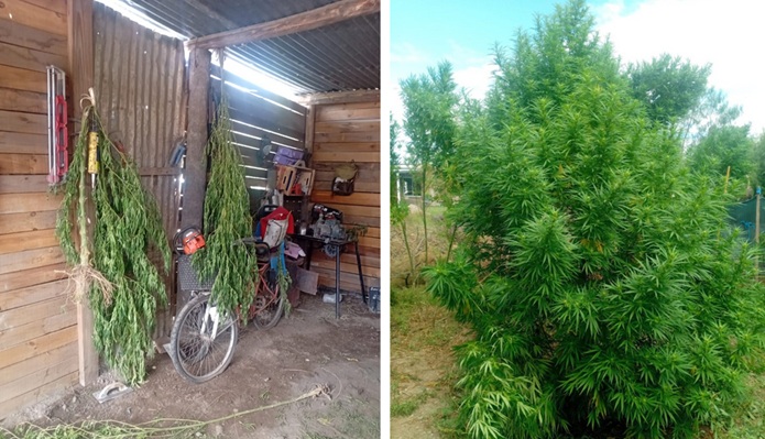 En uno de los inmuebles, además, intervino personal especializado en narcotráfico, que detectó un cultivo de cannabis. Allí incautaron siete plantas en proceso de secado, con un peso cercano a los 9,5 kilos, y otras 34 plantas en tierra, que superaron los 46 kilos. A partir de este hallazgo, se abrió una línea de investigación paralela por infracción a la ley de estupefacientes, que quedó incorporada a las actuaciones.
