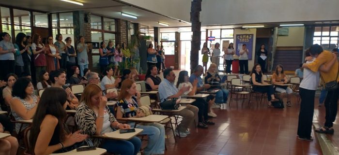 En un emotivo acto del que participaron familiares de Rocío Collado, integrantes de la asociación Madres de pie Mendoza, docentes y alumnas recordaron a Rocío Collado y en ella a todas las mujeres que han sufrido la violencia quienes debían amarlas.