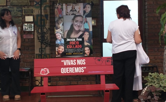 En la escuela Ebyma colocaron un Banco Rojo: fue en conmemoración de la docente Rocío Collado asesinada por su pareja