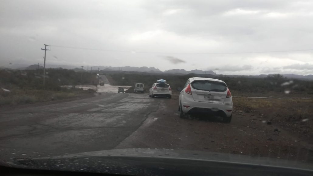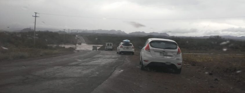 En la zona de Los Reyunos que tiene camino sin asfalto, solo consolidado, el acceso está cortado por la crecida de agua en los badenes que cruzan la ruta 150.