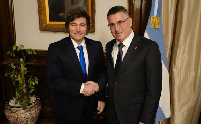 El encuentro del Presidente con el canciller israelí comenzó en privado y luego se amplió a la participación de Quirno y de los embajadores Axel Wahnish y Eyal Sela. Al inicio, Sa’ar recitó la bendición “Sheejeianu” por la elección de Milei mientras el Presidente se colocó una kipá, y recordó la historia de su padre, nacido en la Argentina, y de su abuelo inmigrante.