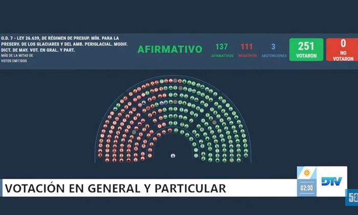 Por una amplia mayoría la Cámara de Diputados dio sanción definitiva a la reforma de la Ley de Glaciares, contó con el apoyo del PRO, la UCR y fuerzas provinciales le facilitó al oficialismo conseguir el número para sancionar la norma.