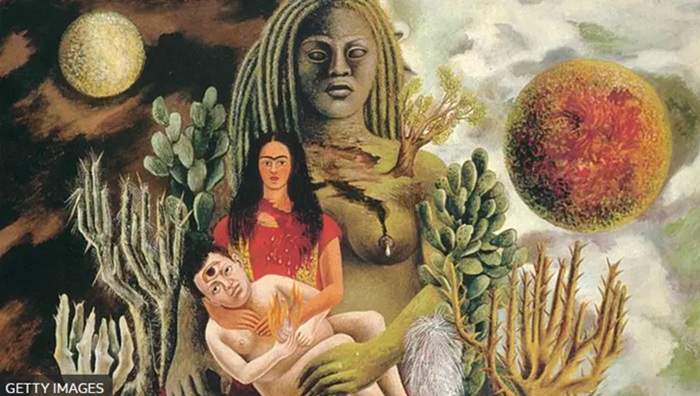 Fuente de la imagen, Roberto Serra – Iguana Press/Getty Images. «Diego en mi pensamiento» es una de las obras de Kahlo destacadas por Santander.