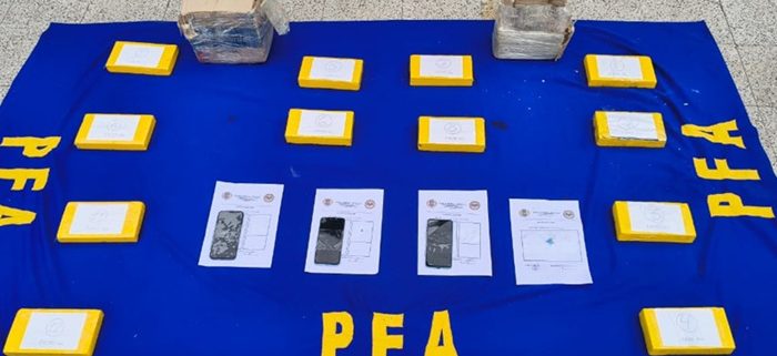 En presencia de testigos, se realizó la prueba orientativa de campo, que arrojó resultado positivo para cocaína, con un peso total de 14 kilogramos.