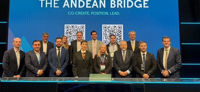 “Presentamos Andean Bridge junto con nuestros socios institucionales”, contó la ministra sobre la actividad, de la que participaron la Bolsa de Comercio de Mendoza (BCM), la Bolsa de Valores de Toronto (TSX), Bolsas y Mercados Argentinos (BYMA) y la organización internacional IN-VR.