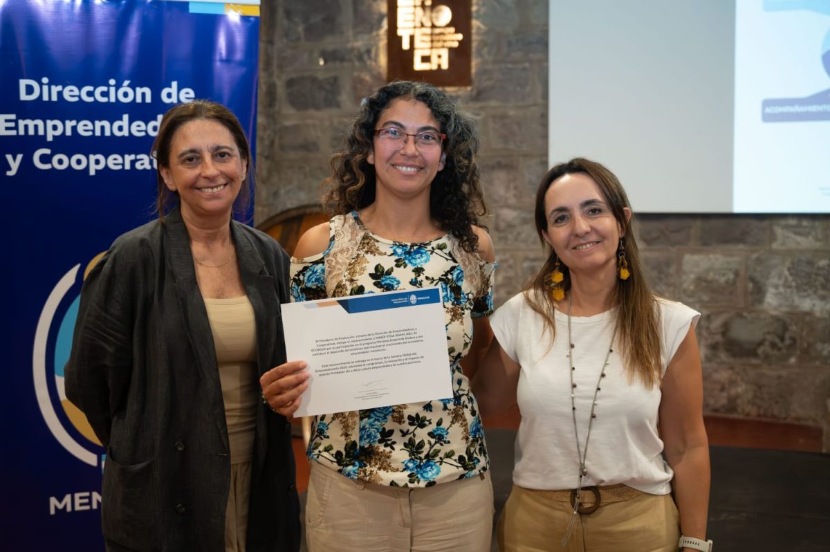 La directora de Emprendedores y Cooperativas, Andrea Nallim, participó en la entrega de certificados a 12 emprendedores que completaron el programa Mendoza Emprende Acelera, una iniciativa del Gobierno de Mendoza orientada a fortalecer proyectos con capacidad de crecimiento y proyección internacional.