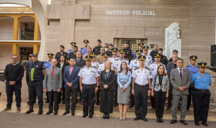 “Hoy es un día de profundo respeto y memoria. Recordamos a los policías caídos en cumplimiento del deber. Aquellos que le entregaron al servicio público lo más valioso que tenían, su vida. Recordamos a sus familias y a todos sus seres queridos”, expresó Mercedes Rus durante el acto.