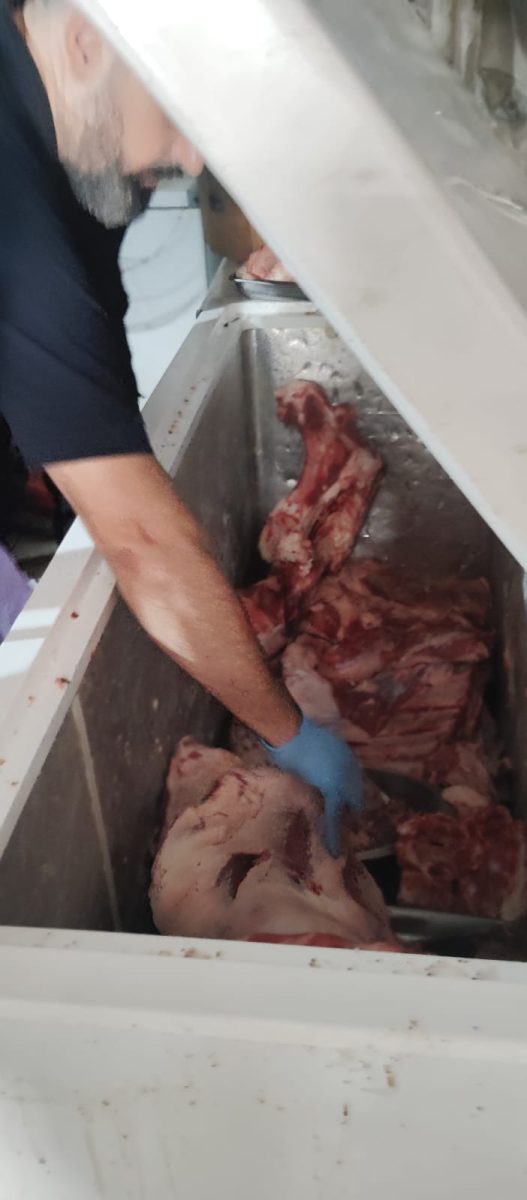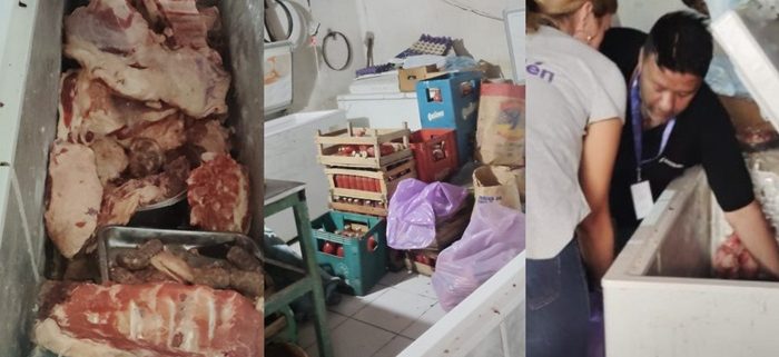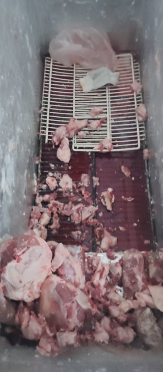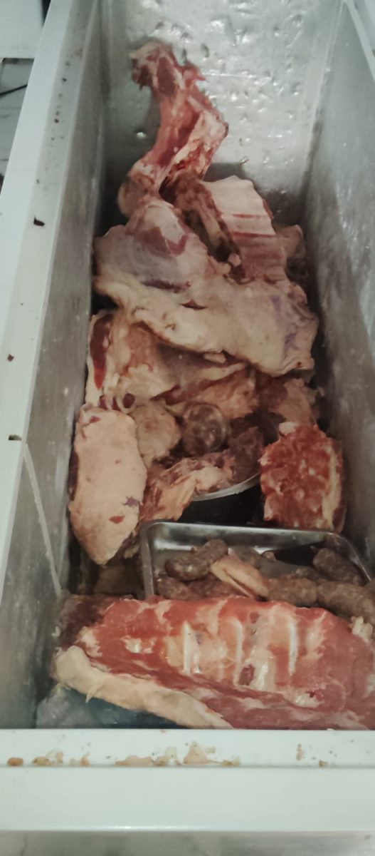 El segundo procedimiento se concretó en un comercio de Guaymallén, donde personal policial realizaba controles en carnicerías junto a equipos de Bromatología municipal. Durante la inspección en la carnicería y panadería, se verificaron múltiples irregularidades: productos vacunos y porcinos en mal estado, falta de frío, contaminación, salsas sin rotular, pastas en descomposición y serias falencias de higiene en los elementos de trabajo.