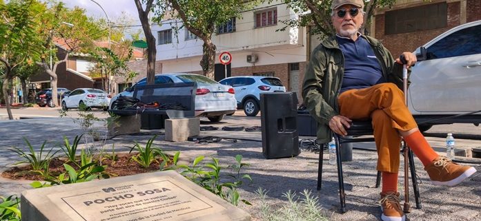 De esta manera, ya se sentía en el aire la efusividad y el cariño manifestado al Pocho Sosa, incluyendo a su compañera, sus hijas y sus nietos, así como a sus amigos y colegas de la música, quienes acompañaron en el reconocimiento colectivo impulsado por la vecina Nancy Linares, quien en representación de los habitantes del barrio, tomó la palabra y destacó la importancia de Pocho Sosa como parte fundamental de la identidad y la vida cotidiana de la comunidad.