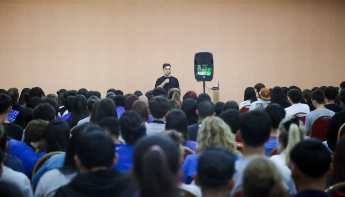 Con la participación del influencer positivo Ayrton Oviedo, este lunes se realizó en el Centro de Congresos y Exposiciones “Alfredo R. Bufano” una charla destinada a jóvenes de escuelas secundarias, CEBJAS y CENS, promovida por le Dirección de Salud Mental de la Provincia, y organizada por la Coordinación Zona Sur de dicha dirección, y el Área Sanitaria San Rafael, con la colaboración de la Dirección General de Escuelas.