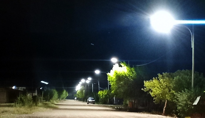 Esta importante inversión de la comuna permite que todo el casco urbano del distrito se sume a esta tecnología, que es más eficiente y permite lograr mejor iluminación. Las tareas incluyeron el acceso por Ruta 40, el perímetro de la plaza y el Polideportivo, además de calles internas del barrio.