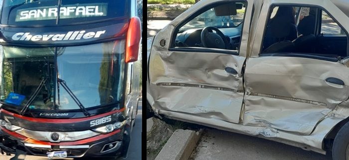 Un colectivo de larga distancia chocó a un auto en Tirasso y Olascoaga