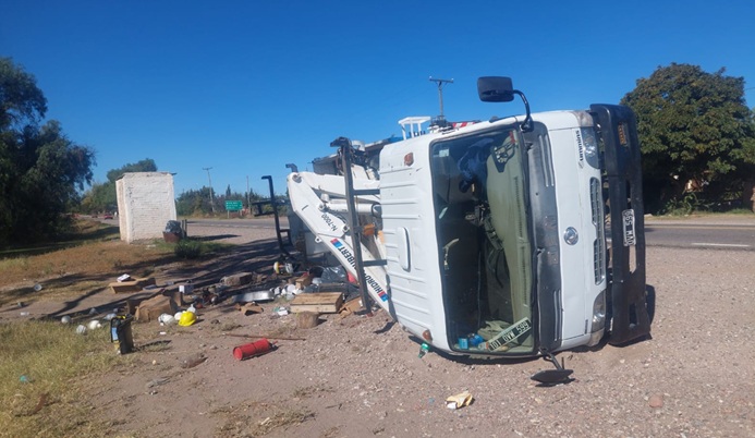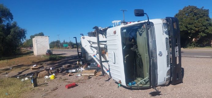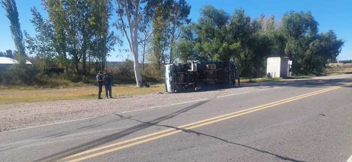 Un camión marca DFM conducido por A. M. (26) volcó este jueves por la tarde en San Rafael tras una maniobra para evitar chocar a otro vehículo. En el rodado también viajaba N. R. (39), quien resultó con lesiones leves.
