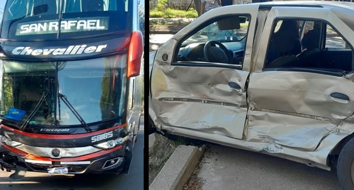 Un colectivo de larga distancia chocó a un auto en Tirasso y Olascoaga
